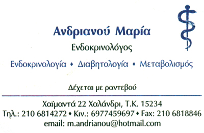 Θυροειδείς, οστεοπόρωση, σακχαρώδης διαβήτηςμ διαταραχές γονιμότητας, παχυσαρκία.Δέχεται με ραντεβού.