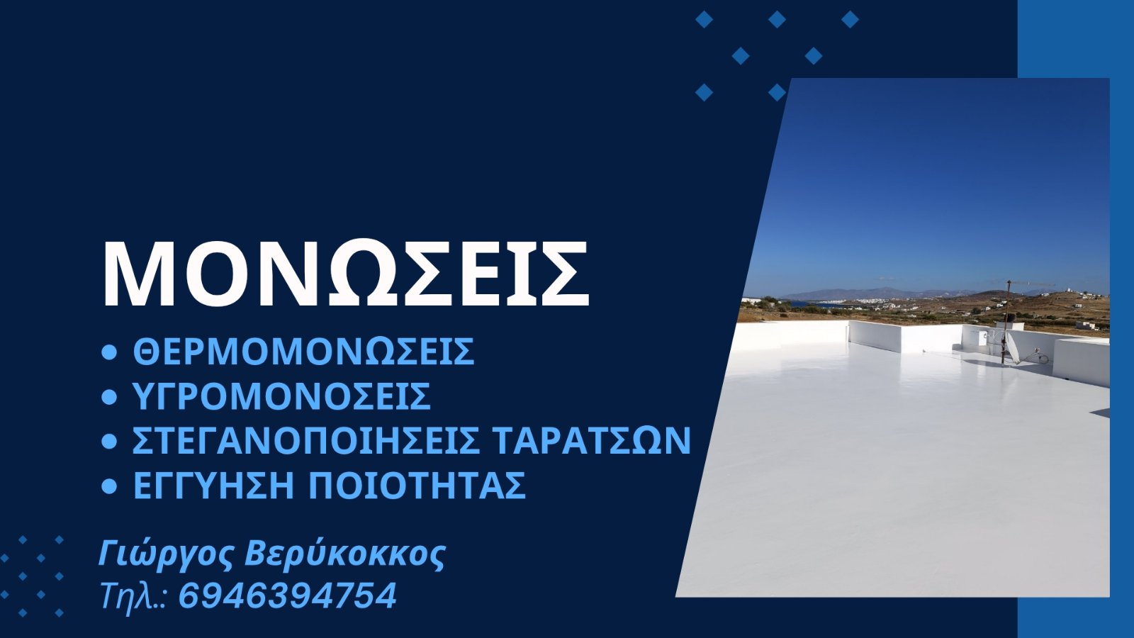 Μονώσεις, θερμοπροσόψεις, θερμομονώσεις, μονώσεις ταρατσών, στεγανοποιήσεις.