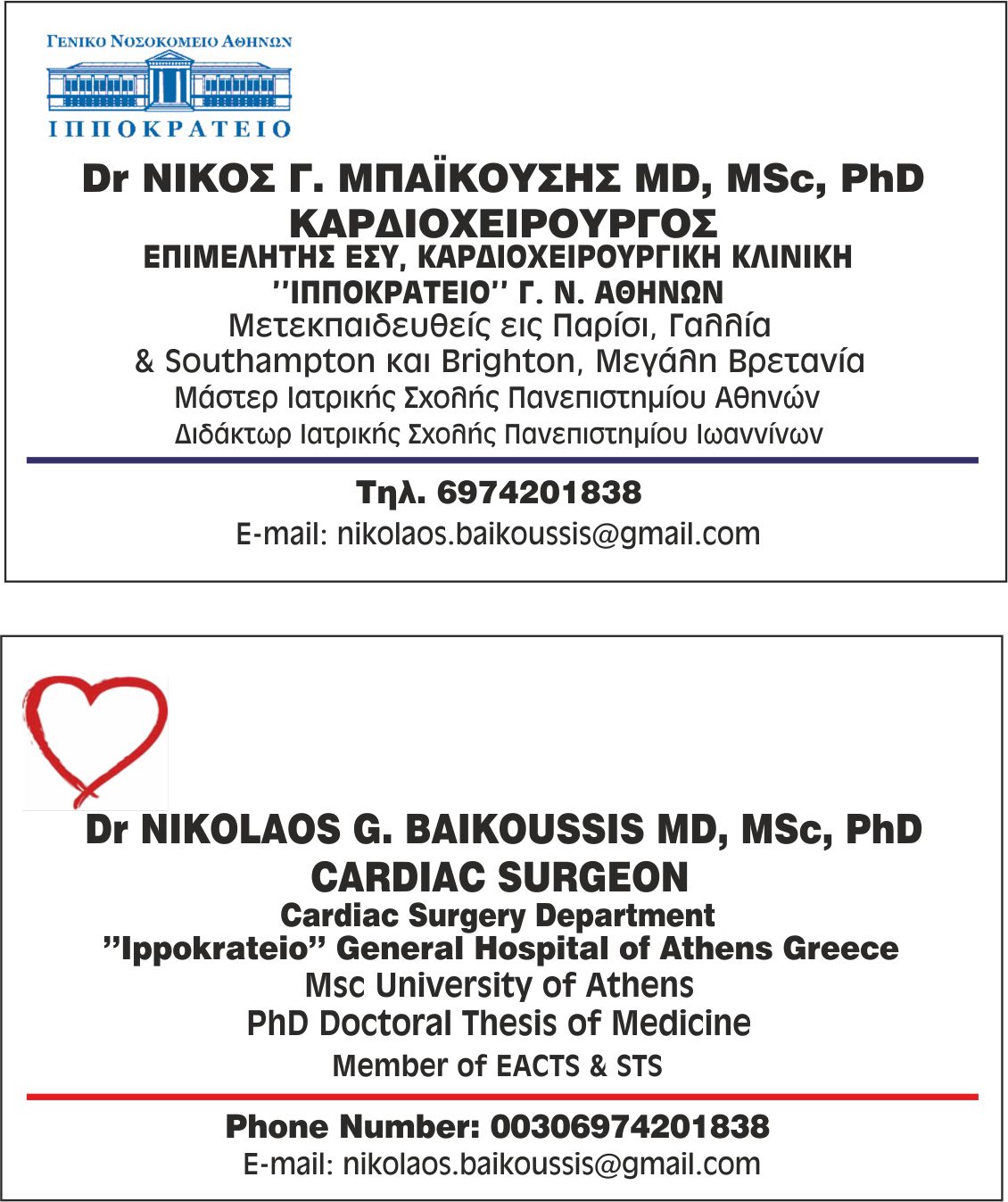 ΝΙΚΟΛΑΟΣ Γ. ΜΠΑΪΚΟΥΣΗΣ MD, MSc, PhD, FEACTS