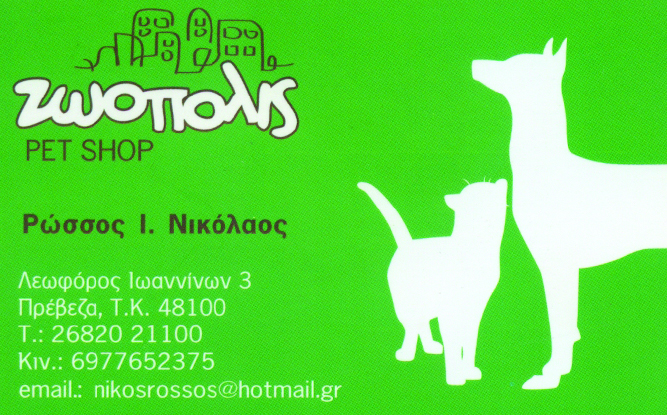 Στο χώρο μας στεγάζεται κτηνιατρικό φαρμακείο, όπου υπάρχουν κλινικές δίαιτες, super premium τροφές των κορυφαίων εταιρειών eukanuba, Purina, hill’s, earthborn, cibau, όπως επίσης και φθηνές σειρές. Υπάρχει μεγάλη γκάμα από αξεσουάρ & ενυδρεία.Λειτουργεί κομμωτήριο και pet spa.