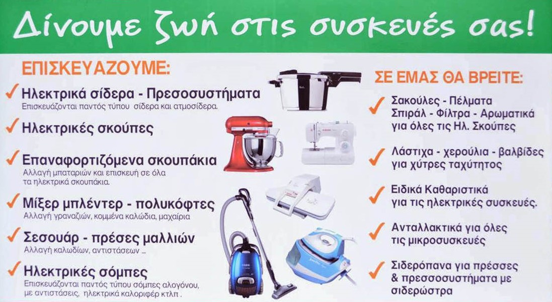 Είναι οι στιγμές που χάνοντας έναν πολύτιμο συνεργάτη μέσα στο σπίτι, όπως για παράδειγμα Ηλεκτρικά σίδερα Πρεσοσυστήματα, Ηλεκτρικές σκούπες,